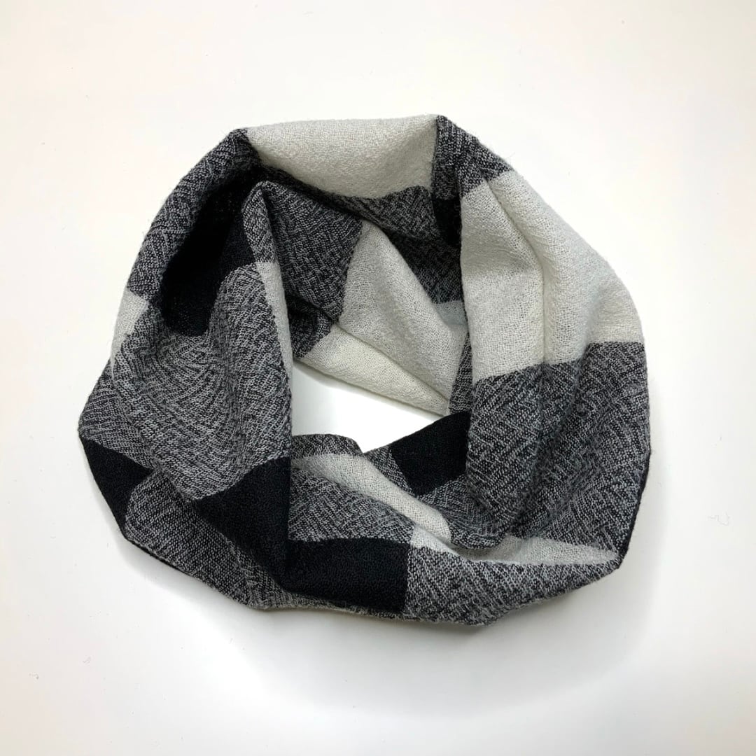 大きな格子柄は、巻き方によって表情も変わる、おしゃれなスヌードです。