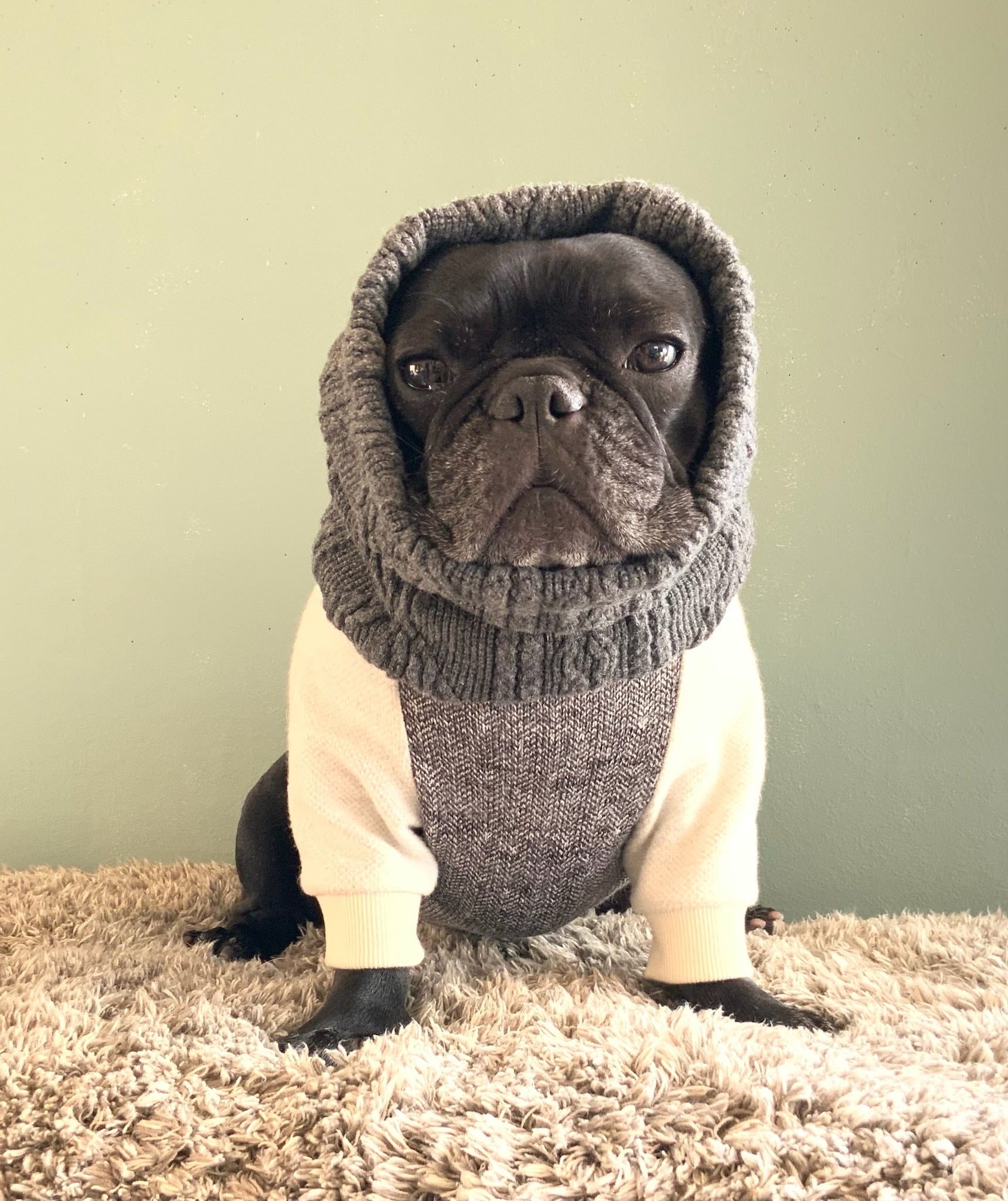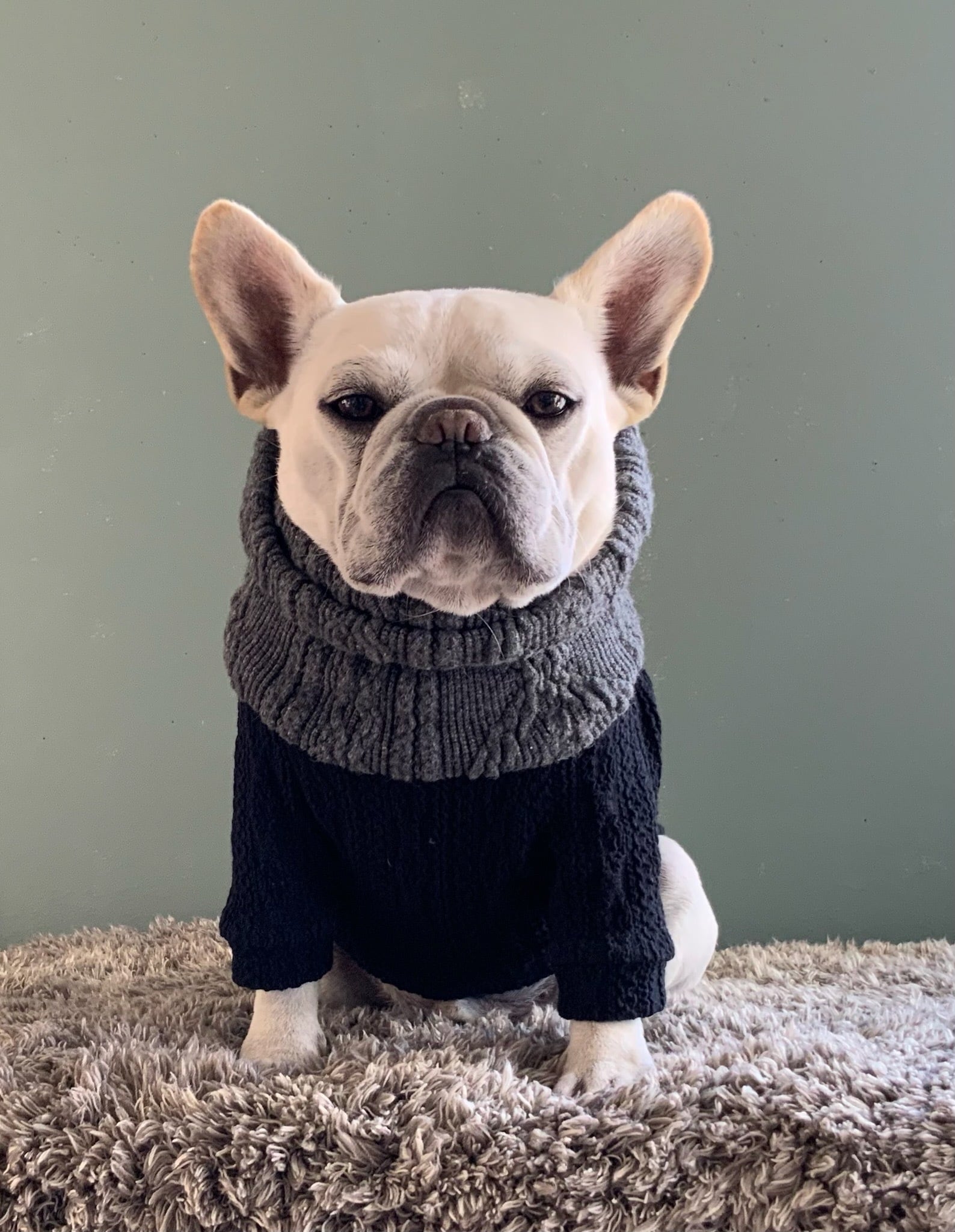 ケーブルジャガードウールウォームネック グレー