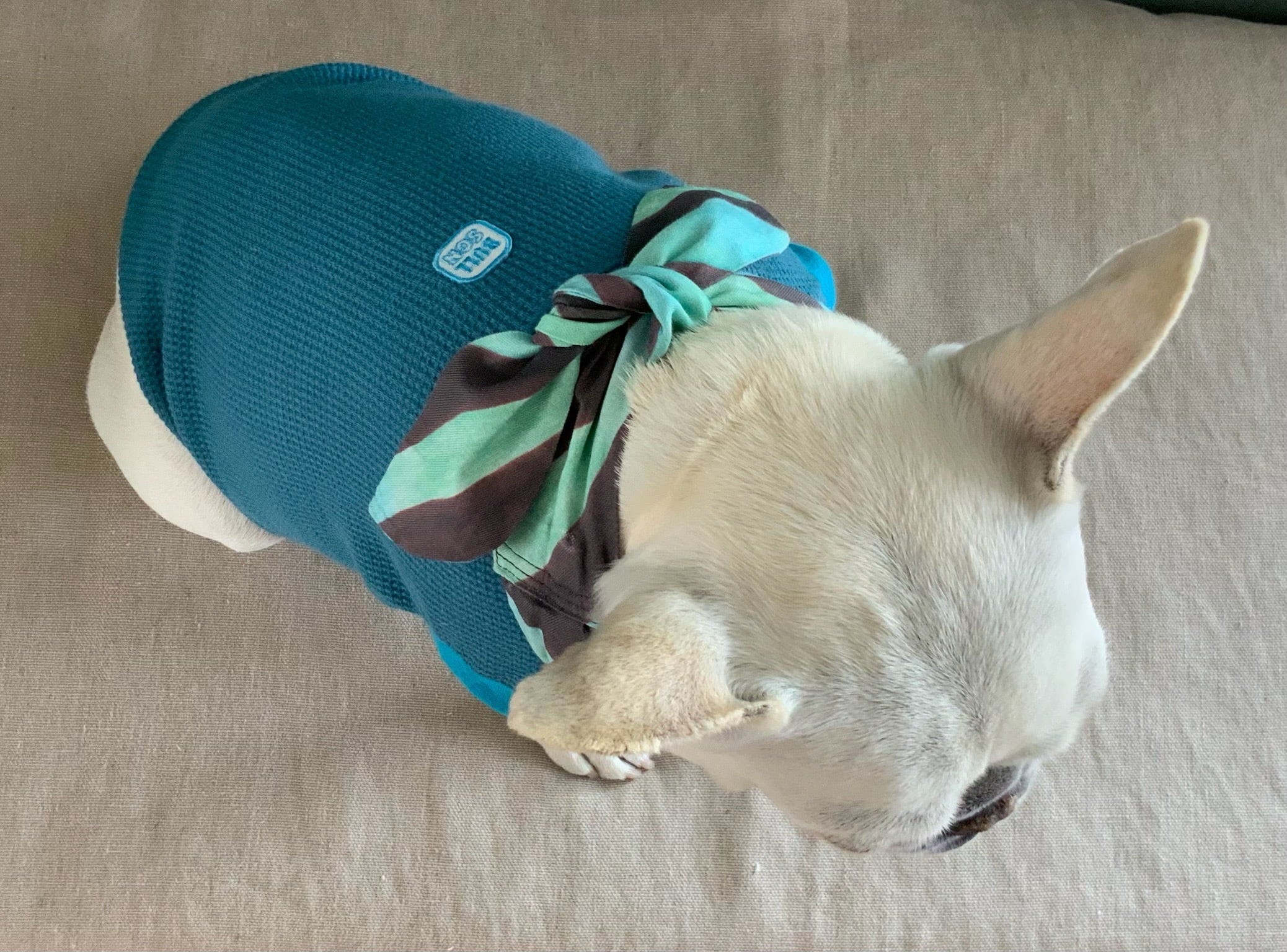 生地が縦に伸びるため、丈も短めに製作しています